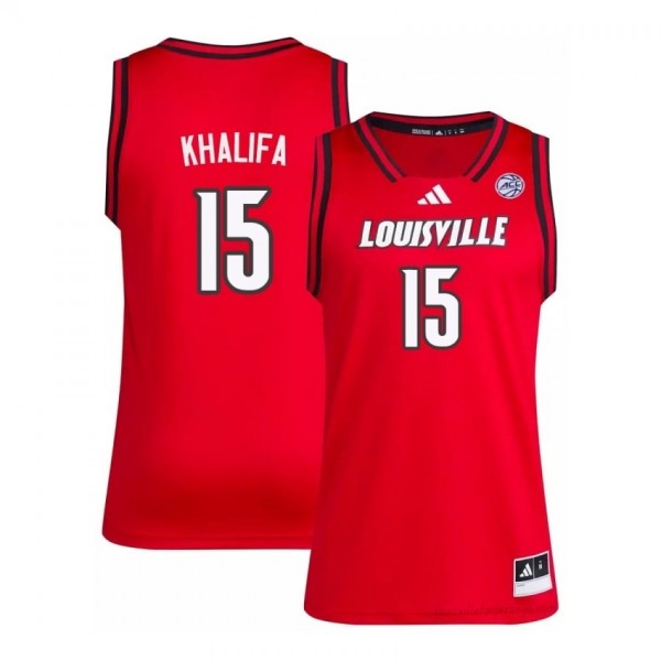 Aly Khalifa #15 Embroidery Basketball Jersey | Louisville Cardinals Red Men Licensed NCAA 72241462