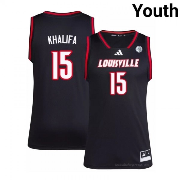 Aly Khalifa #15 Louisville Cardinals Youth Black Officially Licensed NCAA Basketball Jersey 42962763