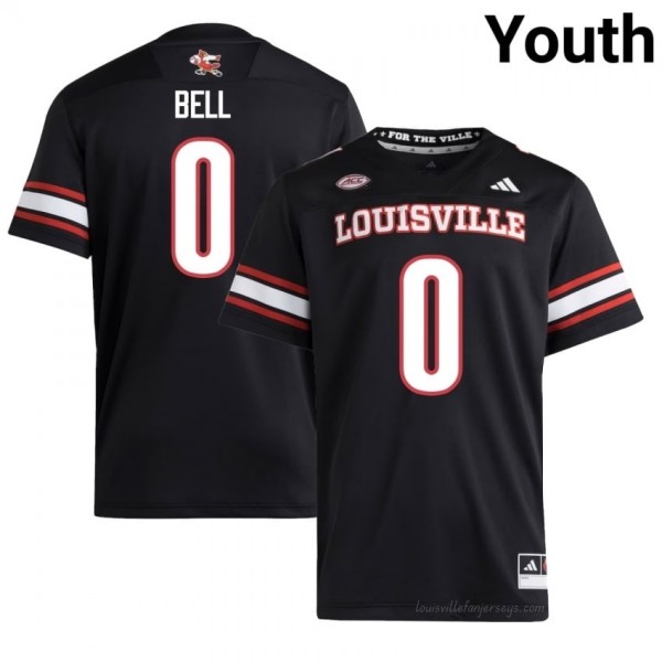 Chris Bell #0 Louisville Cardinals Youth Black Jersey | NCAA Football ACC Game-Day Gear 32782291