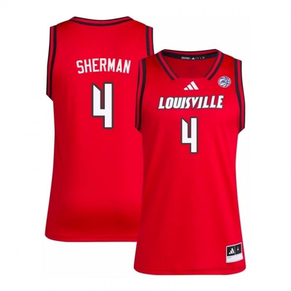 Cole Sherman #4 Embroidery Basketball Jersey | UL Cardinals Red Men Licensed NCAA 87438984