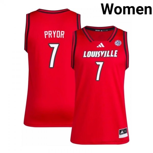 Kasean Pryor #7 Embroidery Basketball Jersey | UL Cardinals Red Women Licensed NCAA 40744798
