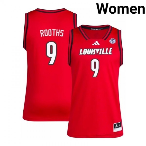 Khani Rooths #9 Embroidery Basketball Jersey | Louisville Cardinals Red Women Licensed NCAA 85503133