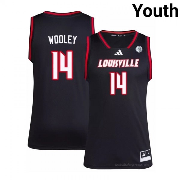 Louisville Cards Adrian Wooley #14 Replica Basketball Jersey | Youth Black Gameday NCAA 37358458