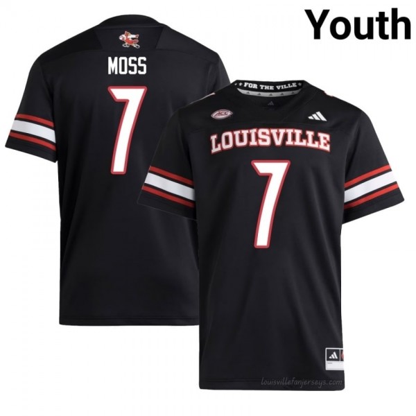 Miller Moss #7 UL Cardinals Youth Black Jersey | NCAA Football ACC Game-Day Gear 64799829
