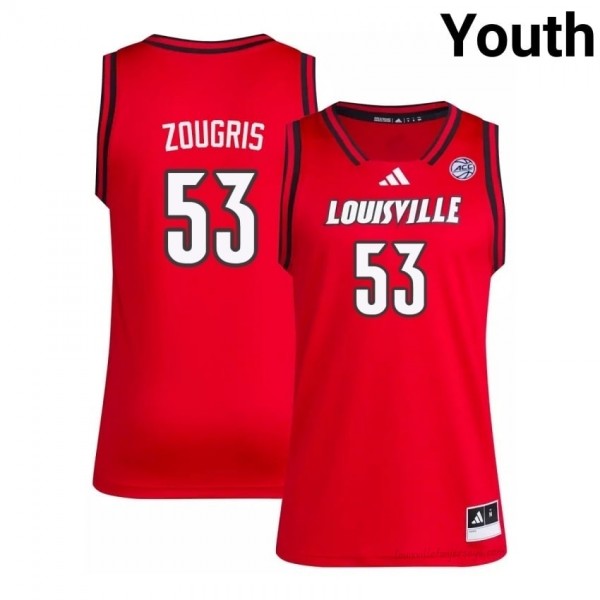 Vangelis Zougris #53 Embroidery Basketball Jersey | UL Cardinals Red Youth Licensed NCAA 11819212