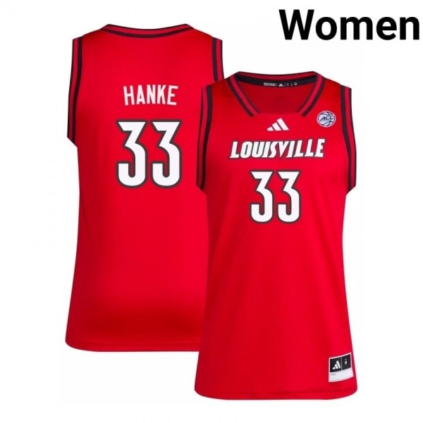 Will Hanke #33 Embroidery Basketball Jersey | UL Cardinals Red Women Licensed NCAA 53678839